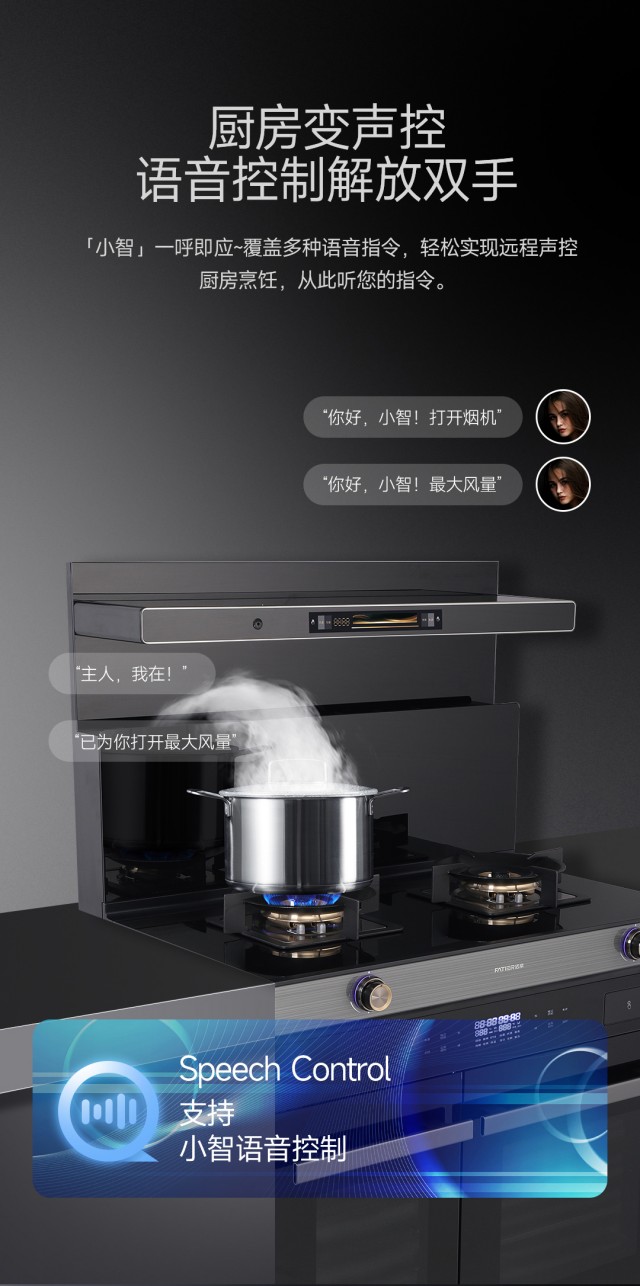 手勢+語音雙智控,避免烹飪時手上沾水、沾油時要開啟煙機的尷尬場景,在優雅中輕松解決油煙難題。