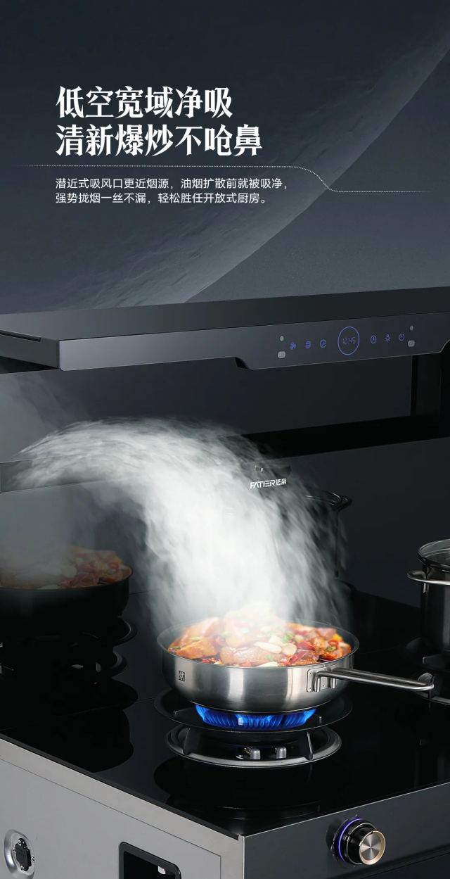 法帝X5ZK蒸烤一體集成灶采用了潛近式吸風(fēng)口,源點(diǎn)低吸,煙源更近,吸得更凈,從根源防止油煙擴(kuò)散,強(qiáng)勁動(dòng)力瞬吸油煙不撲臉,高效解決廚房油煙難題,呵護(hù)她的美麗容顏和健康。